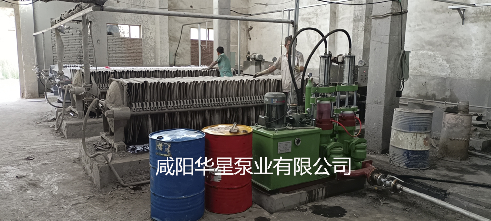 一臺(tái)華星陶瓷柱塞泵給4臺(tái)壓濾機(jī)進(jìn)料